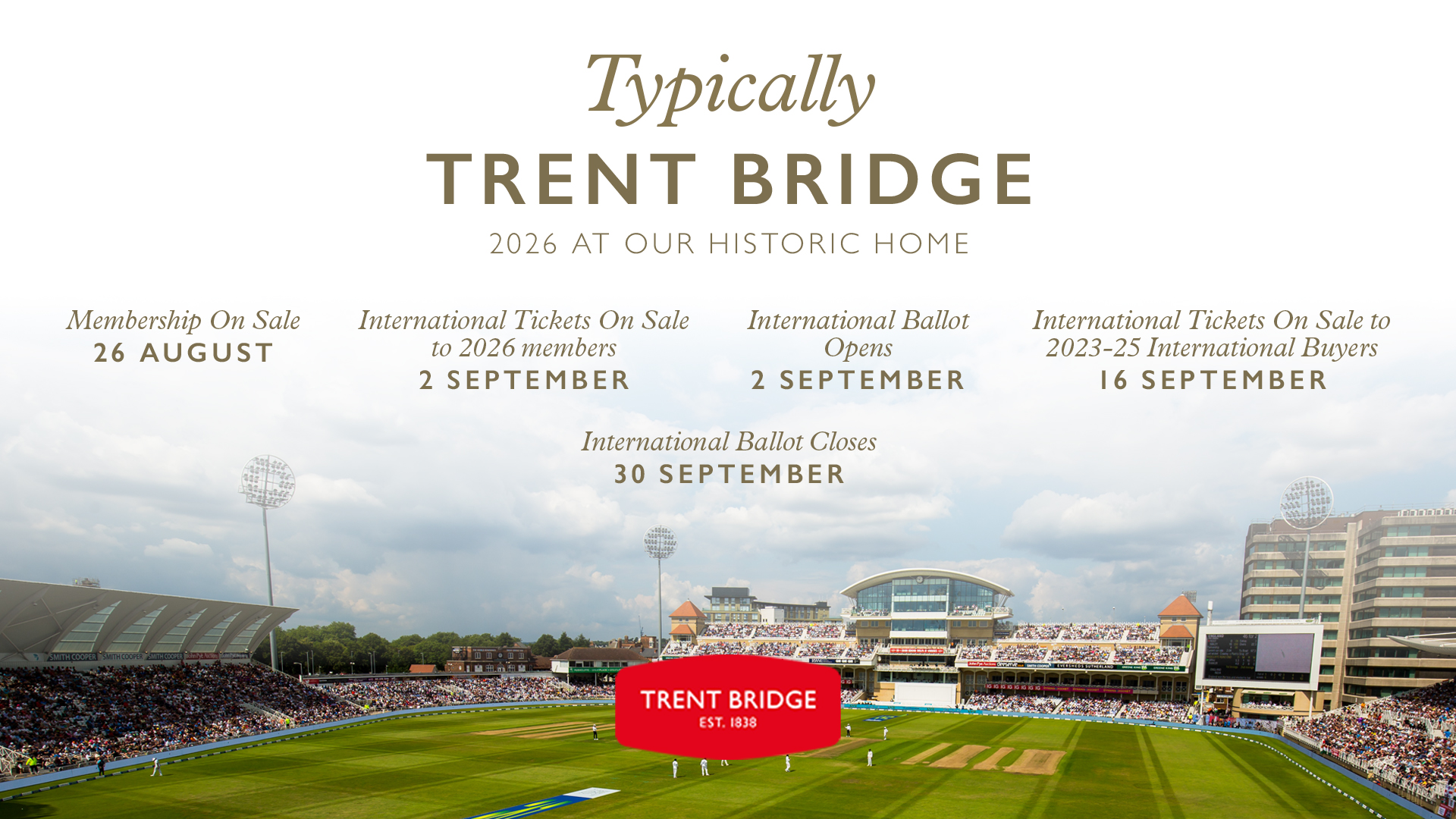 Those who secure 2026 membership will be able to secure international tickets for next summer before anyone else, with tickets for England Men’s Test against New Zealand (25-29 June) and IT20 against India (7 July) being placed on sale exclusively to 2026 members from Tuesday 2 September.