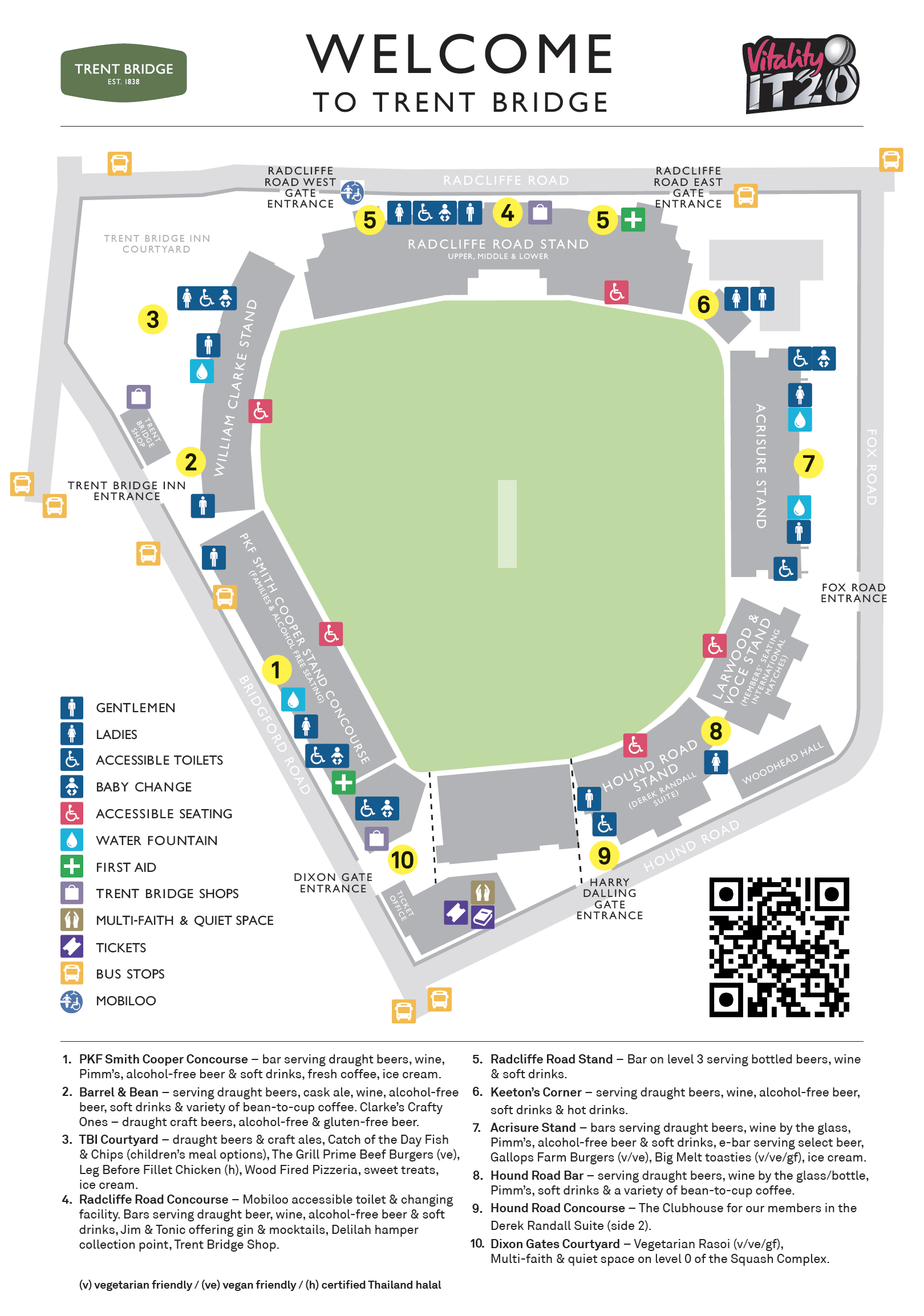 A limited number of Trent Bridge sensory bags will be available to borrow for the duration of the match, which can be collected from the Radcliffe Road Reception.
