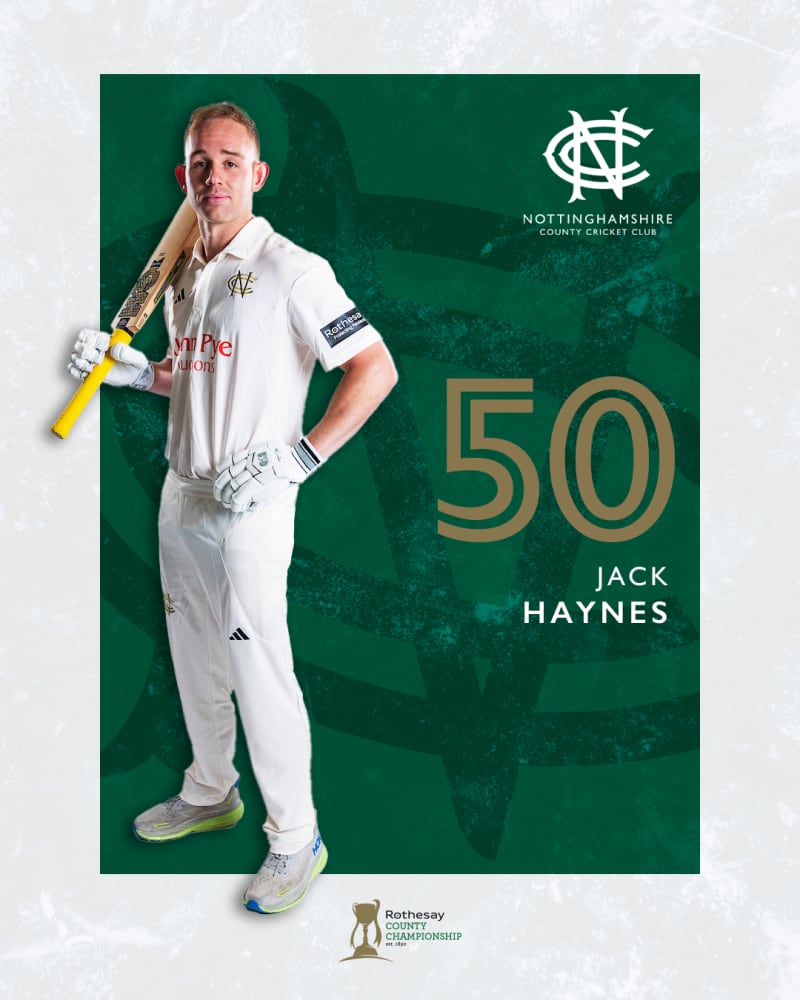 Jack Haynes becomes the second Nottinghamshire batter of the day to pass 50, and continues the fluent theme of the day by doing so at a rate of a little under a run a ball.