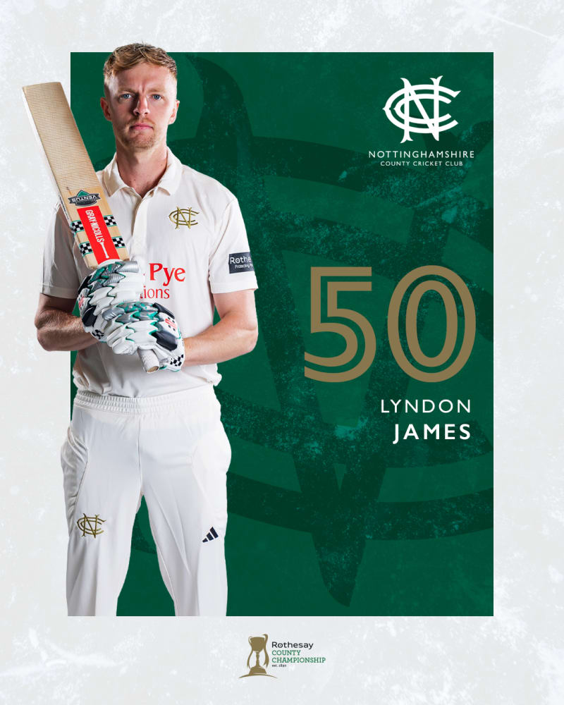A third half-centurion of the Nottinghamshire innings, as Lyndon James takes a single and reaches a 63-ball fifty.