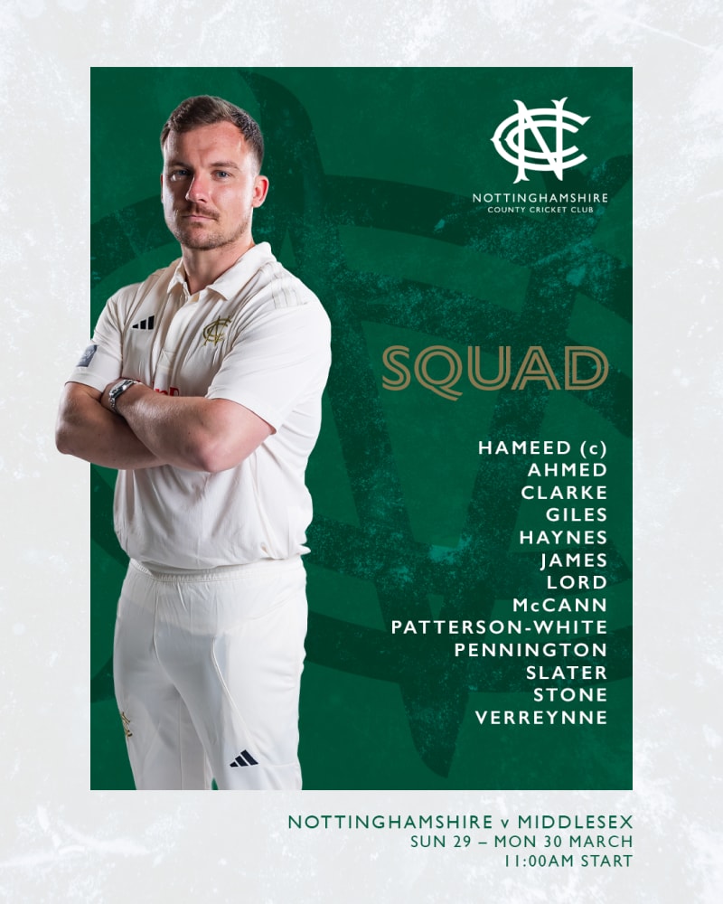 Verreynne will take the field at Trent Bridge for the first time in 2026 as he begins a third stint with Nottinghamshire, while seamer Tom Giles is also included.