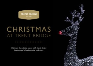 Nottinghamshire County Cricket Club Limited,Trent Bridge Cricket Ground,West Bridgford, Nottingham NG2 6AG. Registered Number IPS 28978R. ❄ ❄ ❄ ❄ ❄ ❄ ❄ ❄ ❄ ❄ SO YOU KNOW All prices include VAT at 20%. We ask for a deposit of £15.00 per person within 10 days of making your booking (non-refundable, so make sure everyone has confirmed!). We’ll collect the rest of the balance 21 days before your event - by bank transfer or all major credit/debit cards. At this point, we will also ask you to pre-order your meals. Should you need to cancel or reduce numbers at this stage, we regret we are unable to give a refund; however, should you wish to add more people, we’ll do our best to accommodate them if we can. To avoid rumbling tums, our festive fare will be served promptly at an agreed time. We’ve never had to yet…but should we need to refuse admission, we will. In exceptional circumstances, we may need to transfer a party night to an alternative date or cancel your event. In the unlikely case of this happening, we’ll ensure we give plenty of notice. Event Enquiries: 0844 811 8710 Event Enquiries Email: events@trentbridge.co.uk Visit: trentbridge.co.uk/christmas