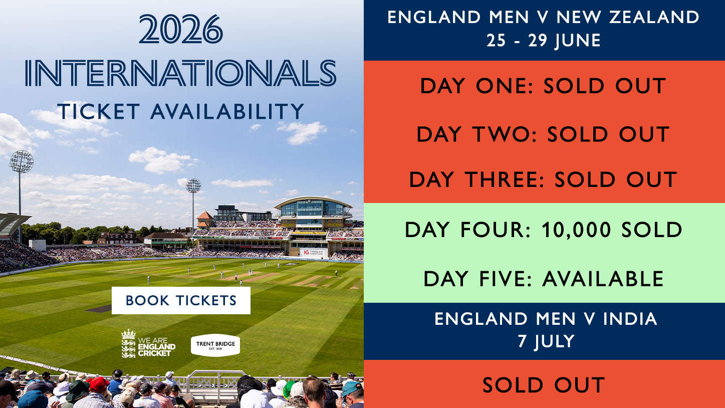 Ben Stokes’ Test team will face the Blackcaps in a five-day Rothesay Test Match between Thursday 25 and Monday 29 June – the first time the two sides have met for a Test in Nottingham since a breathtaking fifth-day run-chase in 2022 kickstarted the Bazball era.
