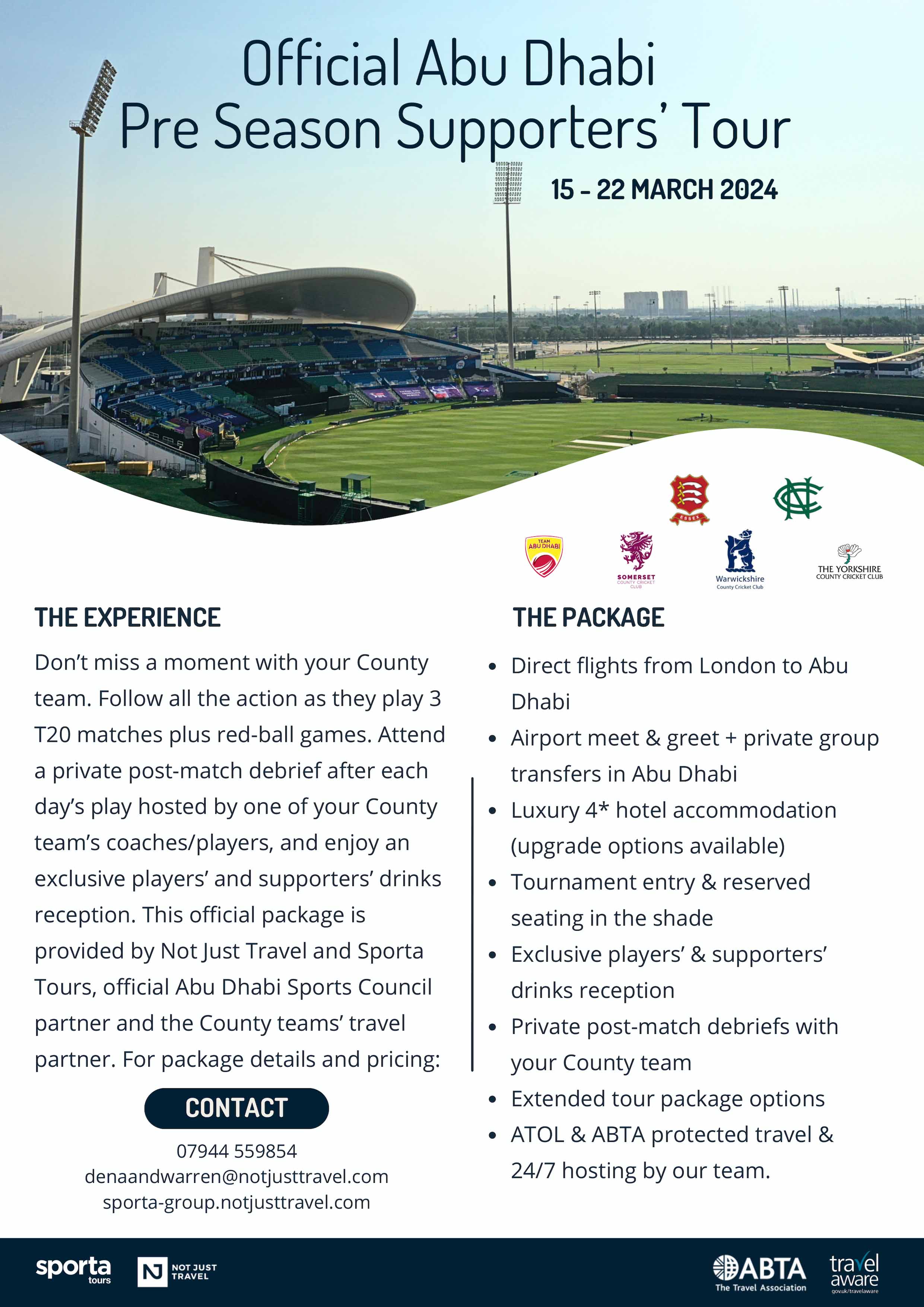 Members and supporters wishing to join Notts in Abu Dhabi can take advantage of spectator packages organised by tour operator Sporta Tours.