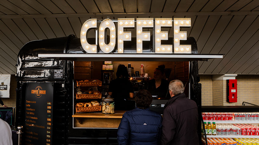 - Bar serving draught beer, alcohol-free beer, wine by the glass as well as soft drinks and snacks