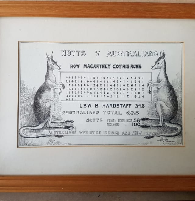 Ironically, had George Gunn held that slip catch it would have made very little difference to the outcome of the match as the Australians racked up 675 runs and the home side, no doubt demoralised by Macartney’s treatment, subsided to just 58 and 100 to lose by an innings and 517 runs, still (we’re relieved to say) the biggest defeat in the club’s history.