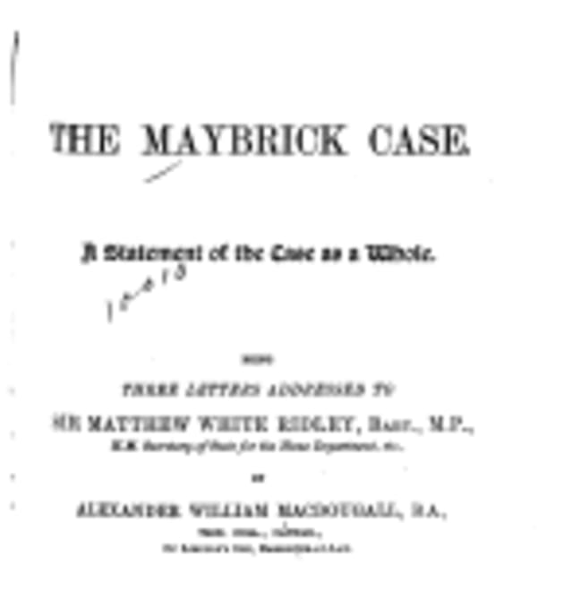 MacDougall certainly commernted upon the first, the 'Penge Murder' and seems to have been party to at least one of the public meetings raised to support Alice Rhodes, who was eventually pardoned.  The other case, of Florence Maybrick had a similar outcome and MacDougall wrote a detailed commentary on the case under the less-than-snappy title: The Maybrick case. A treatise ... on the facts of the case, and of the proceedings in connection with the charge, trial, conviction, and present imprisonment of Florence Elizabeth Maybrick.