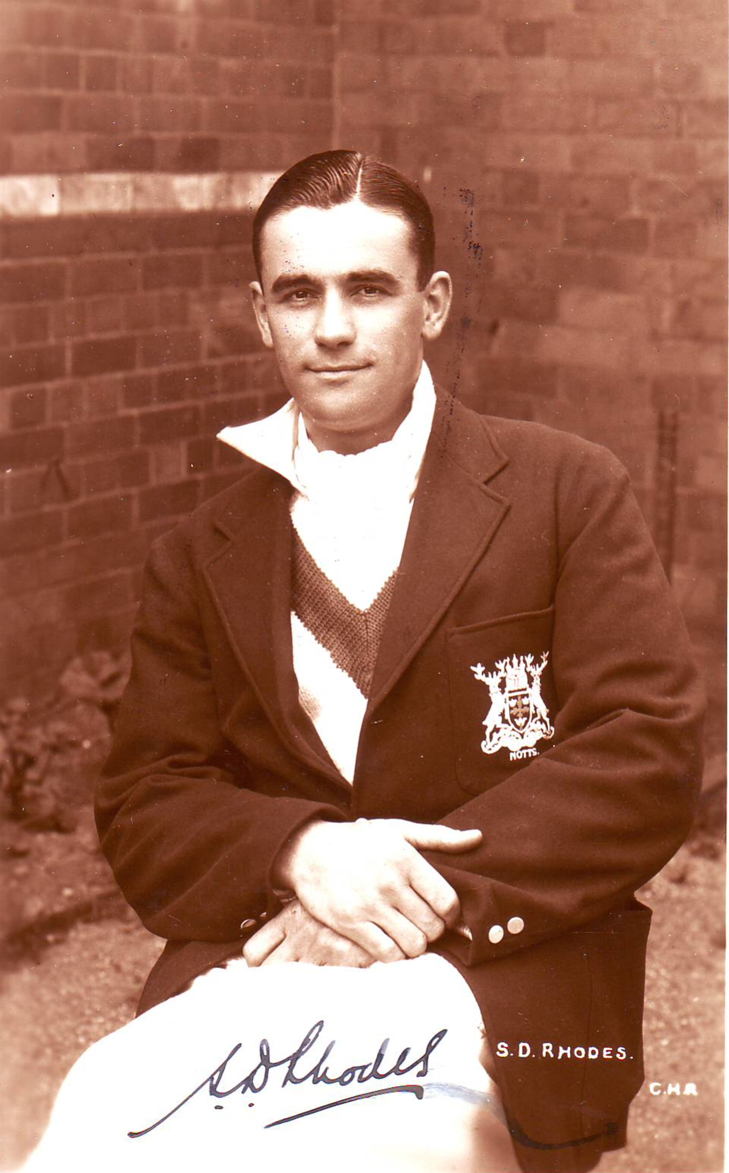 Born at 9, Castle Street, Nottingham on 24 March 1910, Rhodes was educated at Dean Close School, being in the XI for four years and captain in his final season.