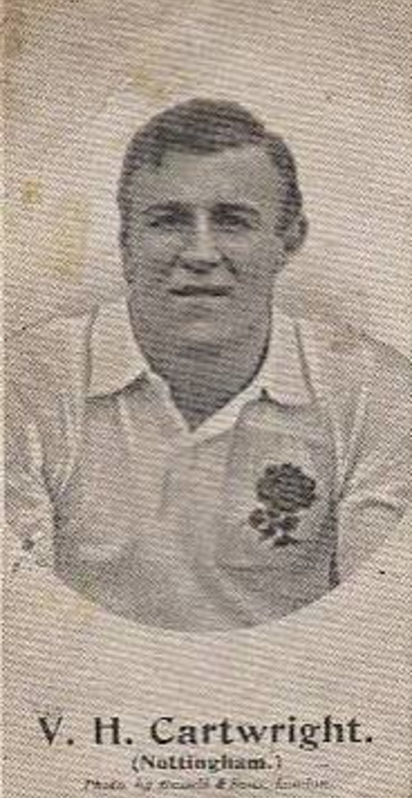 Vincent Henry Cartwright was born in The Park, Nottingham on 10 September 1882 and was educated at Rugby School before going up to Oxford University in 1901. It was whilst at Rugby that he began to play both that game and cricket – he represented the School in 18 matches between 1898-1901 – although his talents were better expressed in the handling code.